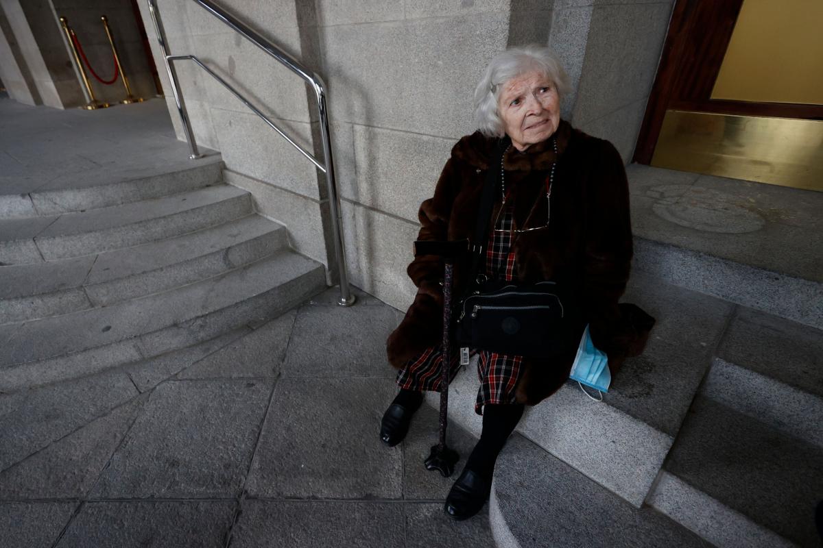 Manoli, la anciana del grupo que ya hace cola para el sorteo de Navidad