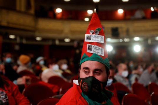 Desde 2012, cuando el sorteo se comenzó a celebrar en el Teatro Real, Manoli es la primera en llegar, aunque cuando este 15 de diciembre, el pasado jueves, se acercó al teatro de la ópera de Madrid ya estaba Jesús, que ocupa el primer puesto vestido de Papa.