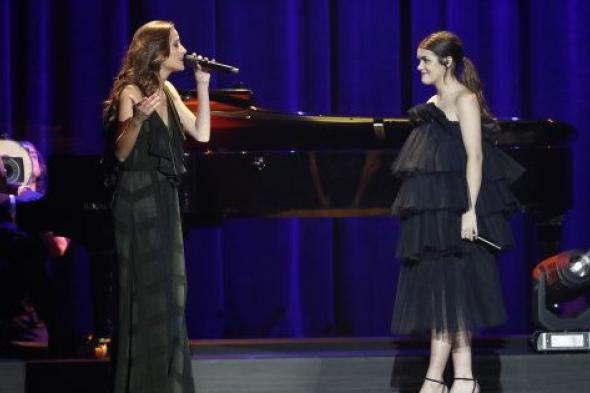 En cuestión de segundos la de Pamplona volvió al escenario con Judit Neddermann para empezar a interpretar los temas nominados y recibir a Rozalén.