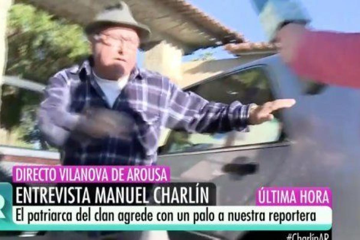 El que tuvo, retuvo. Manuel Charlín, el patriarca del clan de los Charlines gallego, ha agredido con un palo a un equipo del Programa de AR, de Telecinco, que informaba desde la puerta de la vivienda del hombre, de 85 años,