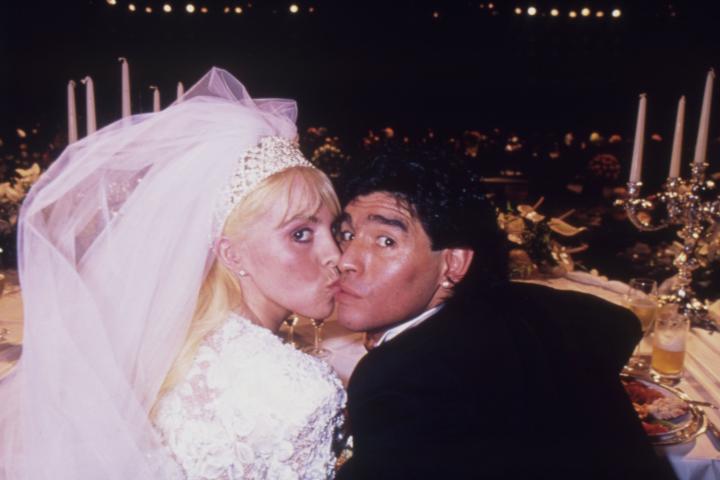 La pareja se casó en 1989 en Buenos Aires siendo ya padres de sus dos hijas en común, Dalma (1987) y Giannina (1989), las favoritas del futbolista y durante años las únicas reconocidas. El banquete de la boda se celebró en el enorme estadio Luna Park y la lista de invitados estaba repleta de grandes nombres entre los que se encontraban Alfredo Di Stefano o Fidel Castro.