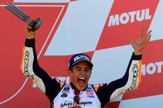 De esta manera, el de Cervera se convierte el campeón más joven de la historia en conseguir cuatro títulos de la categoría reina (2013, 2014, 2016 y 2017) y, con su sexto entorchado mundial -con los de 125cc (2010) y Moto2 (2012)-, es ya el segundo español más laureado tras el eterno '12+1' Ángel Nieto, al superar al balear Jorge Lorenzo (Ducati), con cinco trofeos. Con ello, alza el título 48 para el motociclismo español.