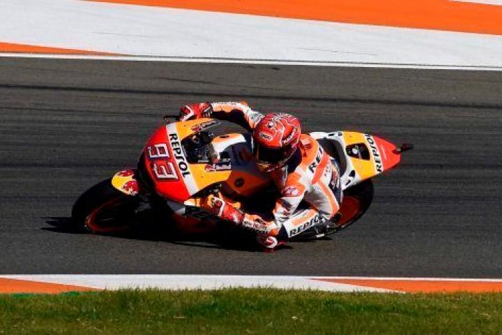 El piloto catalán quedó tercero en el circuito de Cheste. Dovizioso, su rival por el título, se cayó a falta de seis vueltas.