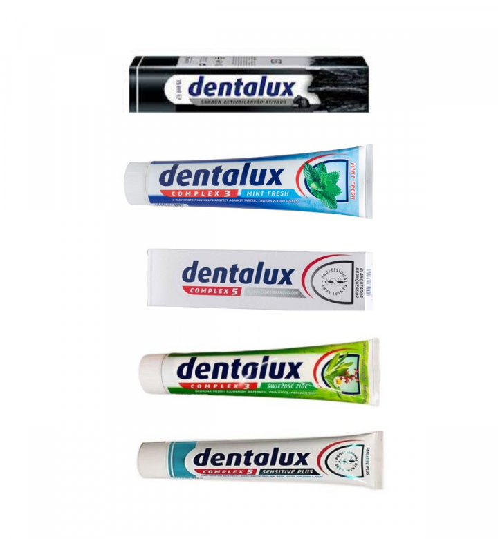En el caso de Lidl, su marca de pasta de dientes Dentalux cuenta con seis variedades distintas: carbón activo, para dientes sensibles, cuidado total, blanqueadora, frescura herbal y menta fresca.