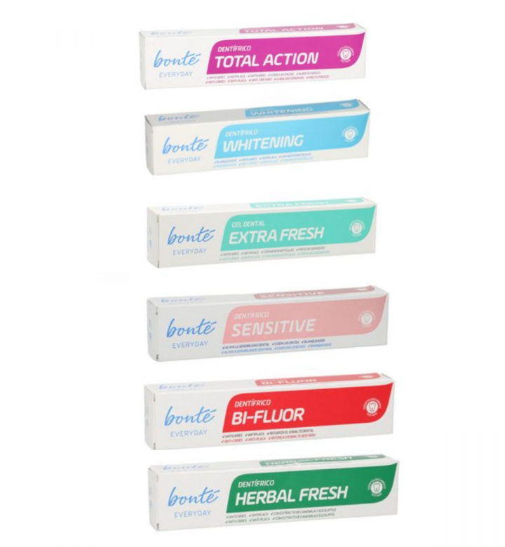 En el caso de Dia, su marca de cosmética Bonté ofrece seis dentífricos distintos para adultos: herbal fresh, bi-fluor, sensitive, extra fresh, whitening y total action.