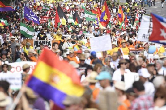 Las Marchas de la Dignidad han vuelto a sacar a las calles a miles de personas que, procedentes de todas las comunidades autónomas, se manifiestan en Madrid desde las 17:00 horas contra la corrupción, la precariedad laboral, la privatización de los servicios públicos y el deterioro de educación y sanidad.