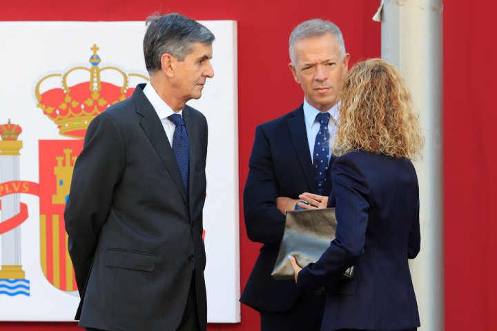 El desfile ha sido un éxito, ha funcionado como un reloj. Lo que lo ha empañado ha sido la política. La pelea política. La principal, la judicial. El gobierno de los jueces y el Constitucional llevan años sin renovarse y Carlos Lesmes, presidente del primero y del Supremo, dimitió el lunes. Hoy su adiós se publicaba en el BOE y por eso no asistía al desfile. Parte del sector conservador del CGPJ no ha acudido porque dicen que el Ejecutivo los ha “ninguneado”, que primero sólo se les mandó invitación de la recepción del Palacio Real que viene tras el desfile y, luego, que les llegó el tarjetón para el desfile en sí, pero tarde, el lunes, sin margen de maniobra. Sí estaba, por ejemplo, el presidente del TC, Pedro González-Trevijano, que ha departido con calma con los presidentes del Senado y el Congreso, Ander Gil y Meritxell Batet.