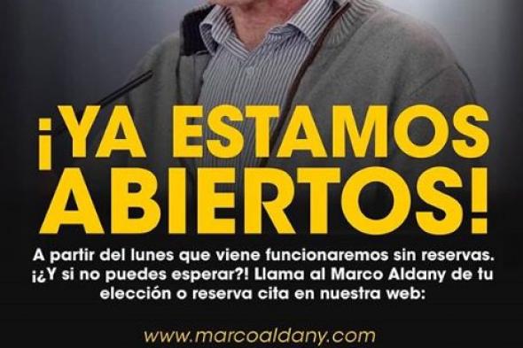 Ahora, la cadena de peluquerías Marco Aldany ha compartido un anuncio sobre su vuelta al trabajo que está causando sensación en redes. ”¡Ya estamos de vuelta! Si has reservado cita previa y no has recibido llamada todavía no te preocupes estamos contactando con todos. ¡A partir del lunes que viene trabajaremos sin cita como siempre!”, ha señalado la cuenta oficial de la franquicia.