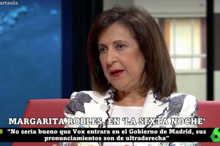 El periodista preguntó a Robles, que había sonado como candidata en las elecciones de mayo en Madrid en lugar de Ángel Gabilondo, “qué pasaría si Vox entra en el Gobierno” madrileño.