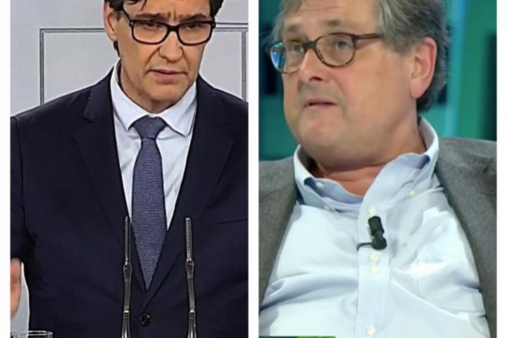 El periodista, tertuliano del programa que presenta Iñaki López, ha pedido al presidente del Gobierno que actúe “con menos chulería” y se ha referido de este modo al ministro: “Eso de que él y su equipo, formado por incompetentes como Illa, un tipo que de Sanidad sabe lo que mi perra Lolita, es alucinante. El ministro de Sanidad de España es alguien que no tiene ni idea de Sanidad. Cero, es espectacular”.