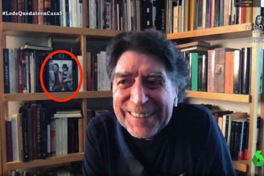 Esos dos del fondo son Joaquín Sabina y Eduardo Aute. El de Úbeda (Jaen) colocó la foto en la estantería tras el fallecimiento de su amigo. "Era el tipo más artista que he conocido", le dijo a Jordi Évol...