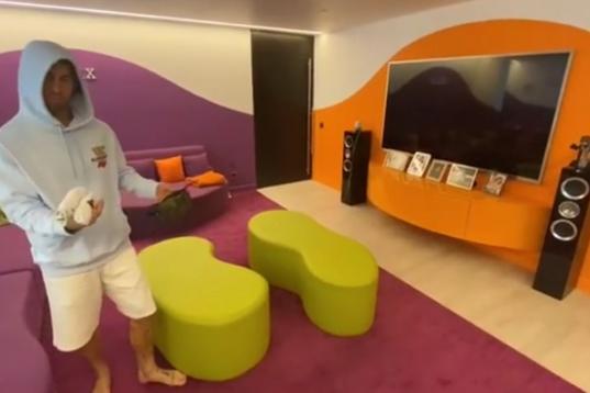 El futbolista ha aprovechado la cuarentena para recolocar algunos elementos de su casa y darle un cambio de aires. En la foto aparece con el que dice es una de sus pinturas favoritas, obra de Manuel León. Ojo a los pantalones con estampad...