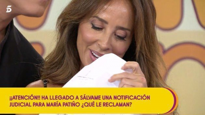 Al más puro estilo Hay una carta para ti, María Patiño fue la receptora este jueves de una misiva de la Audiencia Provincial de Madrid en pleno directo de Sálvame. La colaboradora de Telecinco abrió el sobre ante las cámaras del programa mientras la expectación era máxima en el plató.