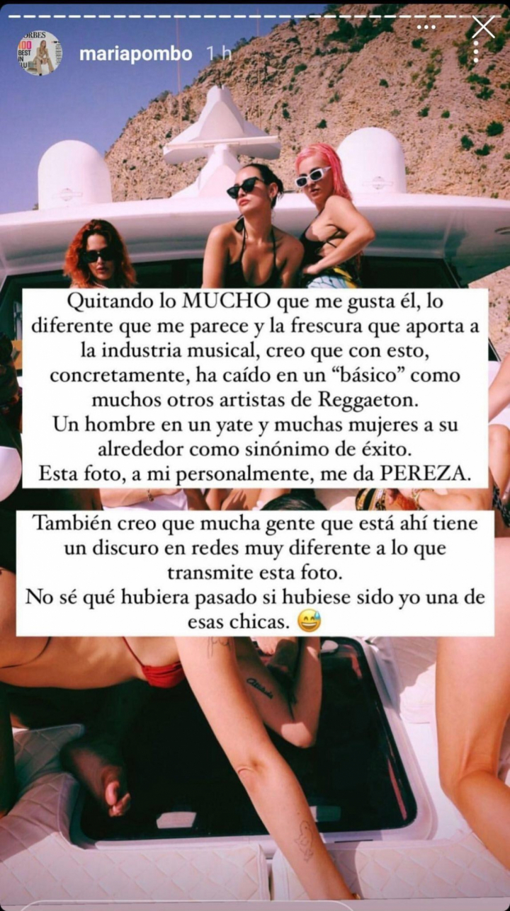 Son muchos los que salieron a criticar al cantante, entre ellos la influencer María Pombo, que escribió lo siguiente en su cuenta de Instagram: