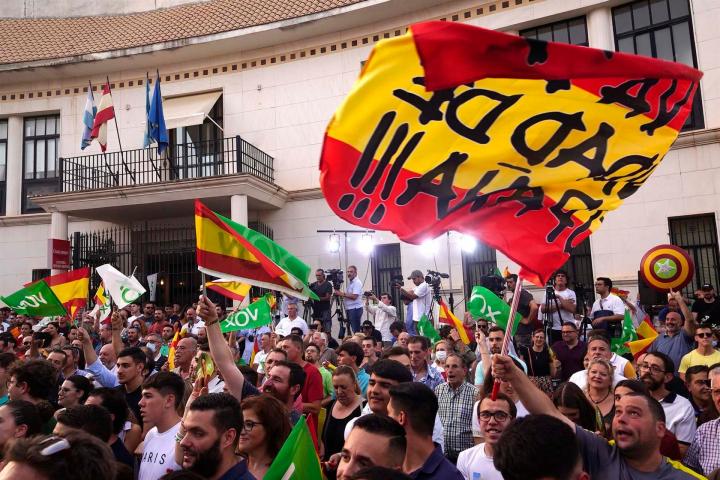 De fondo se escuchaban los abucheos y pitos poco antes de que la multitud comenzara a corear ”¡presidente, presidente!” a Abascal.