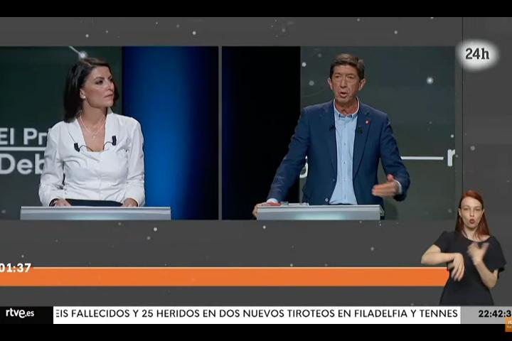 Ha afirmado Macarena Olona que el PP se ha limitado a gestionar la herencia del PSOE y ha hablado de “medidas totalitarias”. En ese instante ha intervenido el que ha sido vicepresidente de Andalucía, Juan Marín, de Ciudadanos, que ha sido muy tajante con la candidata de la extrema derecha.