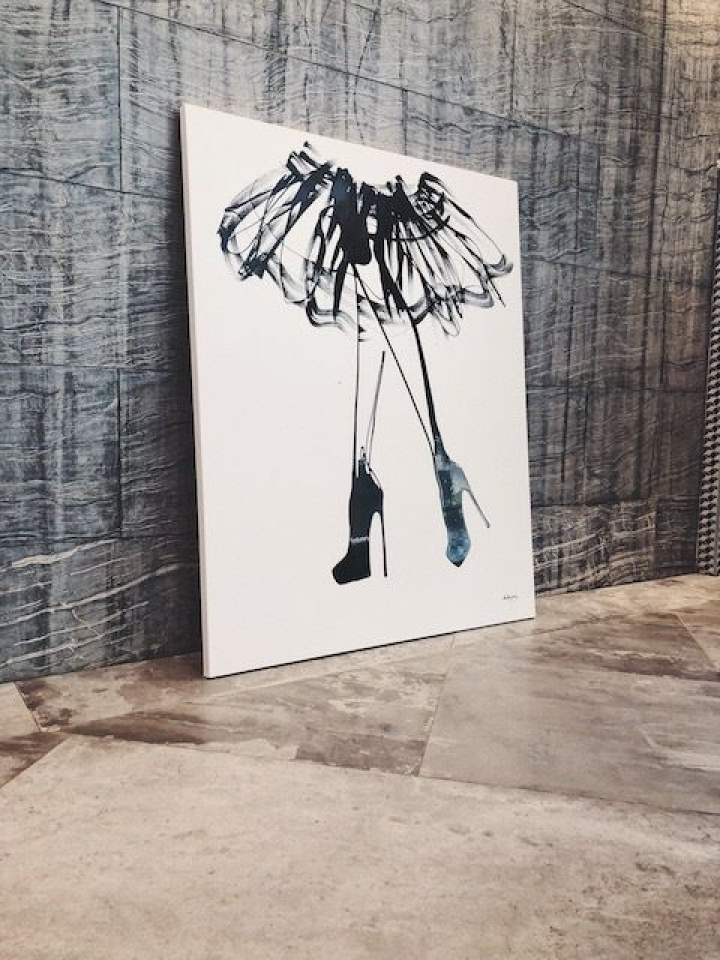Todo empezó en un sueño que me pareció precioso. Empecé a tirar la pintura así porque, después de haber tocado todas las técnicas, tuve un sueño en el que pintaba rostros abstractos, con pintura negra flotando sin lienzo. Cuando me levanté, me dije “esto sería la bomba, ¿cómo puedo hacer esto?”