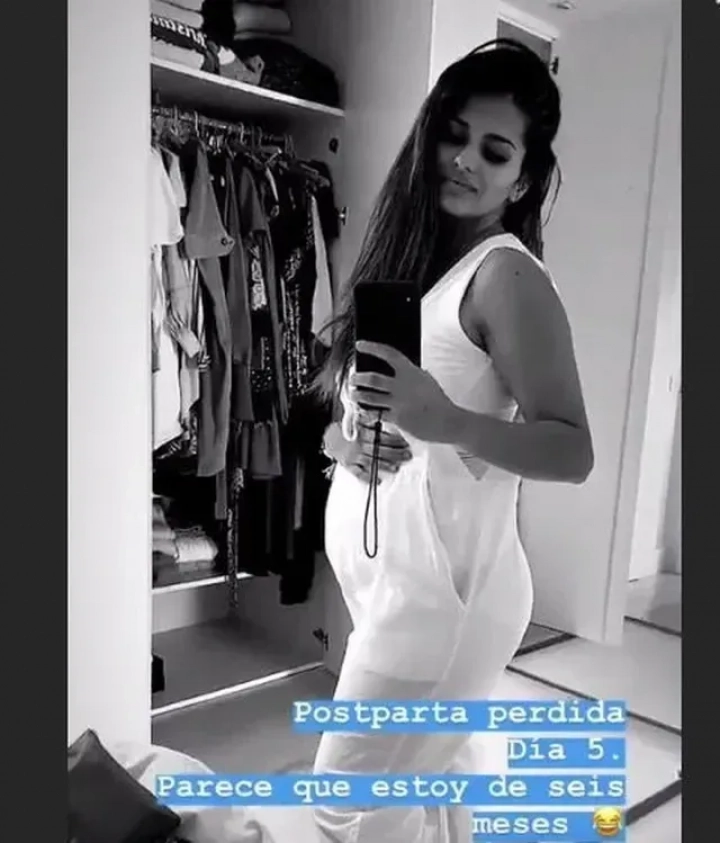 La actriz Sara Sálamo también quiso mostrar su tripa “de seis meses” cinco días después del nacimiento de su hijo Theo.