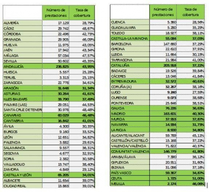Así se han repartido las ayudas por provincias: