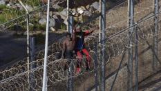 Varios indocumentados permanecen a las 9.00 horas encaramados al vallado en ese tramo, donde el Ministerio del Interior ejecutó obras a principios de 2018 para intentar impermeabilizarlo.