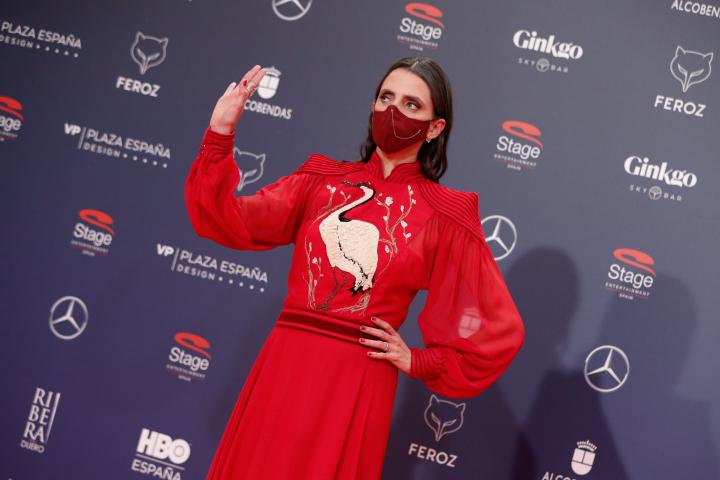 La alfombra roja, que ha tenido lugar en el Hotel VP Plaza España Design, no iba a ser menos. Aunque sin Victoria Abril, que se negó a posar con mascarilla, los nominados han pasado por el tradicional photocall con esta prenda estrella y han tenido que mantener dos metros de distancia entre ellos.