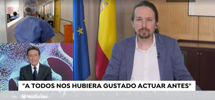El vicepresidente cree que “en esto es clave no hacer política, porque ni los partidos ni los medios de comunicación fueron capaces de prever algo que era muy difícil de prever”. “Este Gobierno actuó de manera muy estricta antes que otros gobiernos que esperaron para llevar a cabo medidas restrictivas”, ha dicho Iglesias, que ha reconocido que no fueron “capaces de dimensionar lo que se nos venía encima”.
