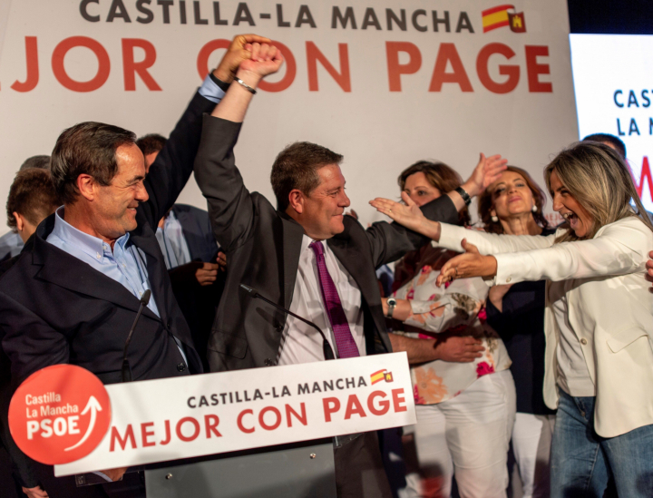 En la vecina Castilla-La Mancha a Emiliano García-Page no le podrán toser mucho en las Cortes: 19 diputados de 33. Todo un salto, ya que hace cuatro años quedó como segunda fuerza por detrás del Partido Popular, aunque logró gobernar gracias a un pacto con Podemos. Y con una gran evolución al alza desde las elecciones generales del 28-A: del 32,37% a un 44,1%. Un aire de tiempos de José Bono vuelve a respirarse en esta autonomía.