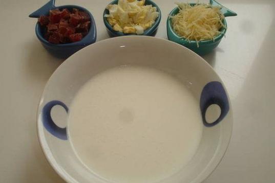 Esta versión se prepara con Thermomix. Como guarnición puedes poner cuenquitos con huevo duro, queso rallado o embutido. Consulta la receta aquí.