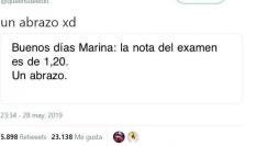 La sorpresa del profesor es evidente con su contestación: ”¿Todo el curso? ¿Aprenderlo entre el sábado y el domingo teniendo una nota baja?”.