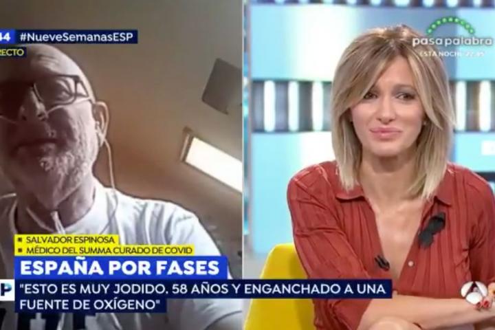 Susanna Griso ha entrevistado este miércoles en Espejo Público (Antena 3) a Salvador Espinosa, un médico del Summa (las urgencias de Madrid) que se ha curado del coronavirus tras haber permanecido 46 días ingresado.