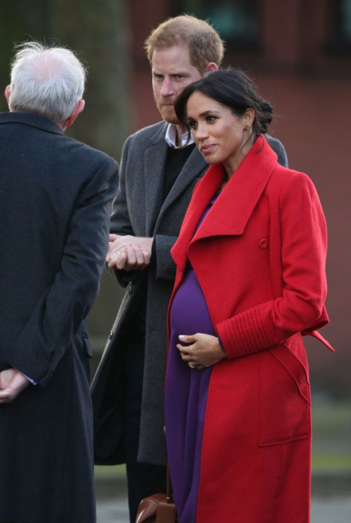 Los duques de Sussex han estrenado su agenda oficial para 2019 con una visita a la localidad inglesa de Birkenhead, donde tienen cuatro actos programados. Meghan Markle ha elegido un colorido look para la ocasión, con un vestido morado de Aritzia, un abrigo rojo de Sentaler, unos tacones también rojos y un bolso marrón.