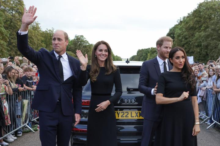 Los príncipes de Gales y los duques de Sussex, saludando a los ciudadanos tras la muerte de Isabel II.Chris Jackson via Getty Images