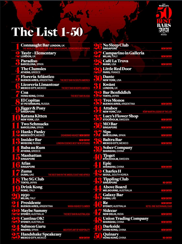 Cuatro locales españoles se han hecho un hueco en los The World’s 50 Best Bars 2021.