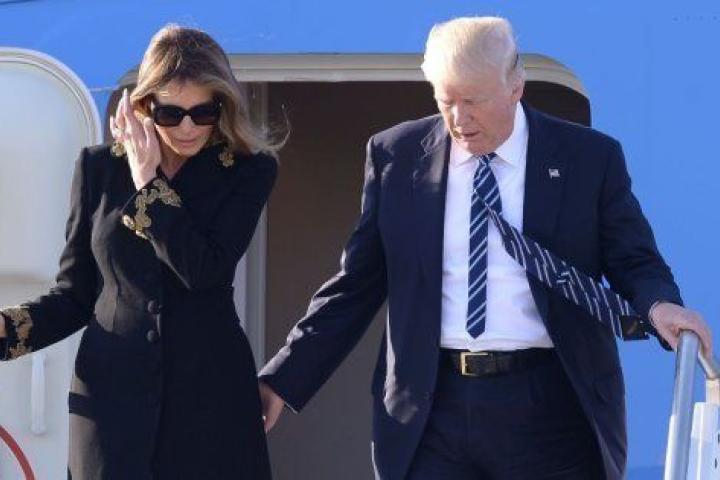 Melania esquiva (otra vez) la mano de Trump cuando bajaban del Air Force One en Roma