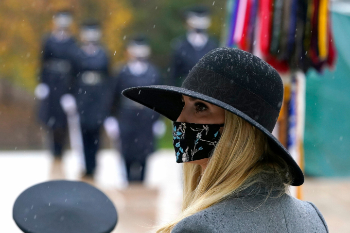 En el acto en Arlington también estaba Ivanka Trump, que apenas se ha pronunciado desde la derrota electoral de su padre. Ella sí llevaba mascarilla, a diferencia de Donald y Melania.