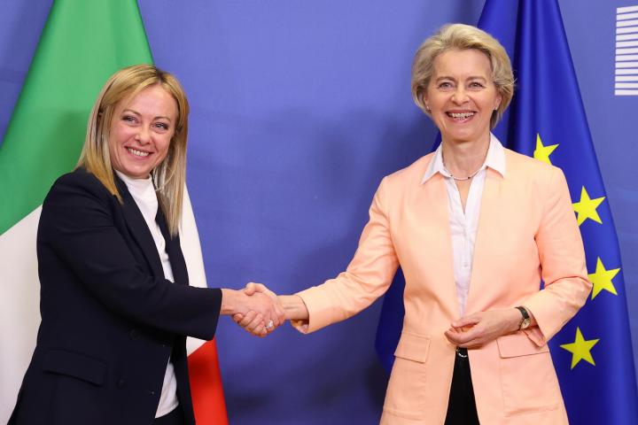 Tras la reunión con la mandataria italiana, la presidenta de la Comisión Europea agredeció a Meloni “la fuerte señal enviada” al hacer su primera visita a las instituciones europeas en el marco de su primer viaje al extranjero.