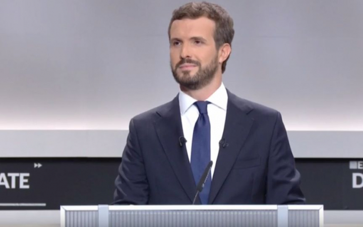 Por ejemplo, en esta imagen de Pablo Casado, candidato del PP, al que vemos tapado hasta la mitad del cuerpo:
