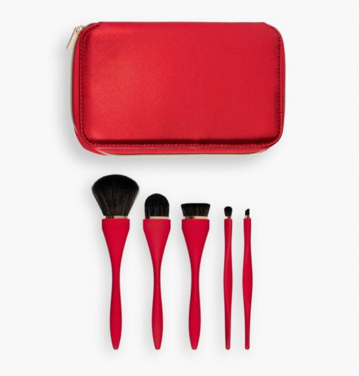 Incluye cinco pinceles diferentes: para polvos, maquillaje, contorno, biselado y sombra. Viene con una funda para guardarlos y transportarlos.