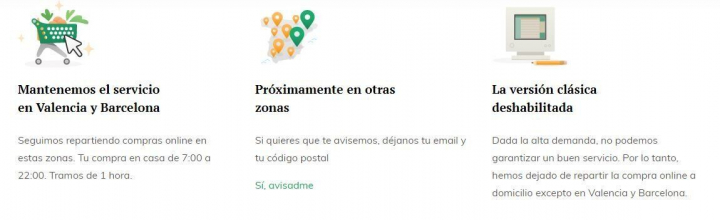 Entre ellos está Mercadona, que ha eliminado esa opción en toda España salvo en algunas zonas de Valencia y Barcelona, donde sí se puede seguir haciendo la compra por internet.