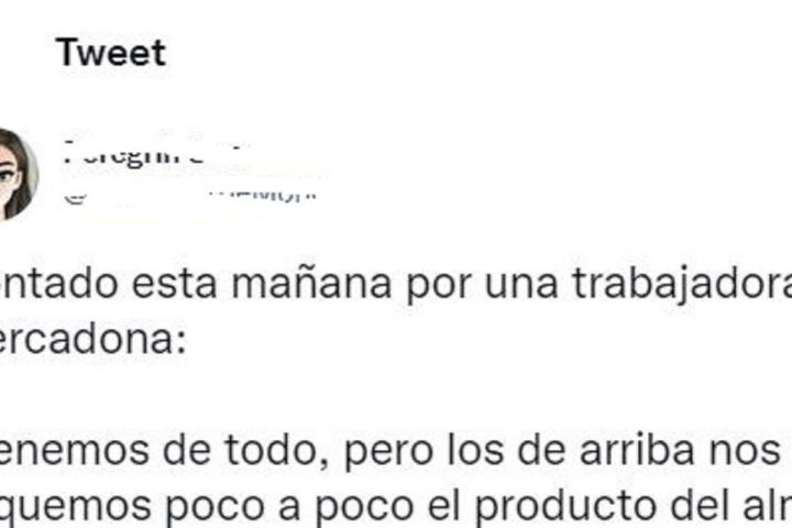 “Contado esta mañana por una trabajadora de Mercadona: ‘Tenemos de todo, pero los de arriba nos dicen que saquemos poco a poco el producto del almacén y sigamos dando imagen de escasez, para ir cada día subiendo gradualmente los precios y sacar más. Esto para aceite, leche, etc”, decía el tuit, que en cuatro días supera los 29.000 ‘me gusta’ y los 11.200 retuits.