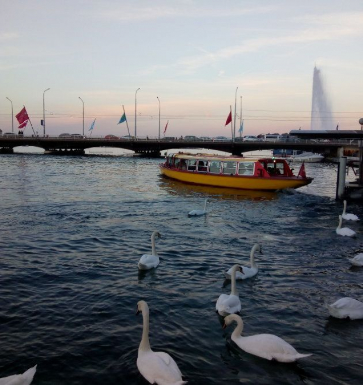 Els vaporets blancs amb la xemeneia negra i groga que fan la travessia del llac ara són d'un groc rovell d'ou i d'un roig tirant cap a vermelló i ja no tenen xemeneia. Són part de la xarxa del transport públic de la ciutat. Quan baixes de l'avió, pots agafar-ne bitllets gratis en un dispensador i quan arribes a l'hotel el primer que et pregunten és si vols una tarja de transport urbà de franc durant l'estada. És la ginebrina o suïssa manera de promocionar la cosa pública.