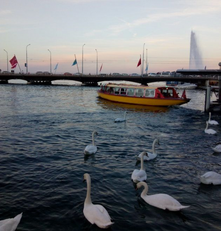 Los vaporcitos blancos con la chimenea negra y amarilla que hacen la travesía del lago ahora son albero y bermellón y ya no lucen chimenea. Son parte de la red del transporte público de la ciudad. Cuando bajas del avión, puedes coger billetes gratis en un dispensador y cuando llegas al hotel lo primero que te preguntan es si quieres una tarjeta de transporte urbano también gratis durante tu estancia. Es la ginebrina o suiza manera de promocionar la cosa pública.