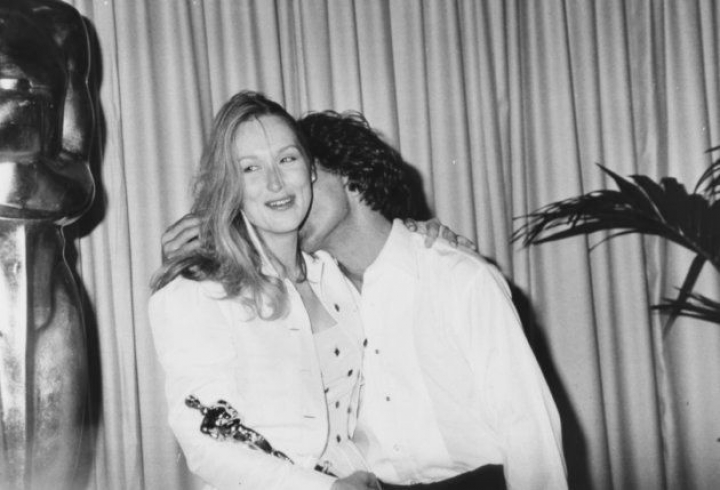 Dustin Hoffman besa en el cuello a Meryl Streep en la entrega de los Oscar de 1980.Getty Images