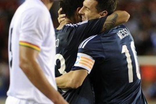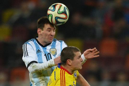 Lionel Messi pelea el balón con Cristian Bourceanu en el juego de preparación entre Argentina y Rumania el pasado 5 de marzo de 2014.