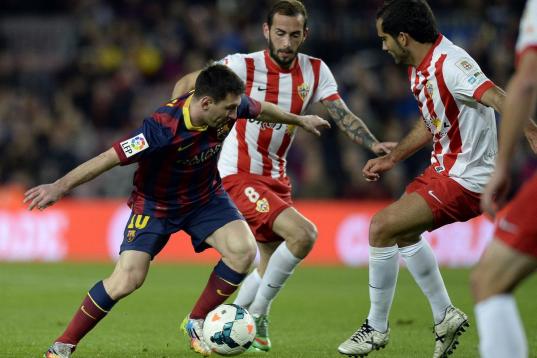 Lionel Messi con el Barcelona en el juego contra Almería el 2 de marzo de 2014
