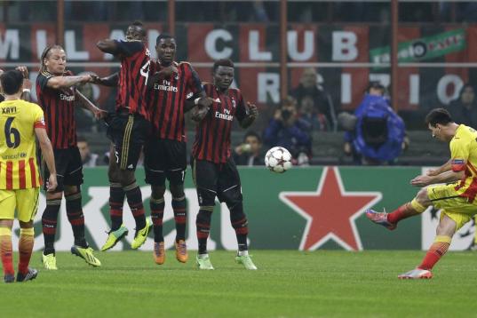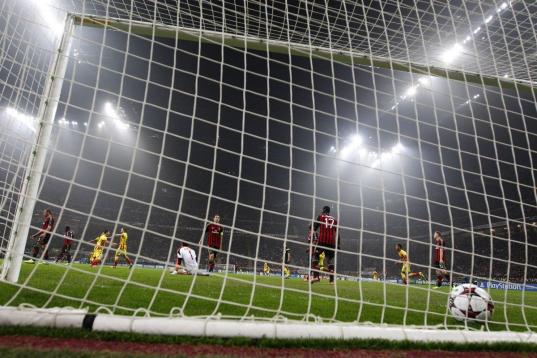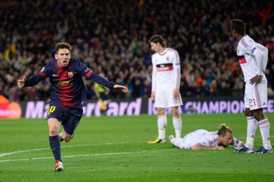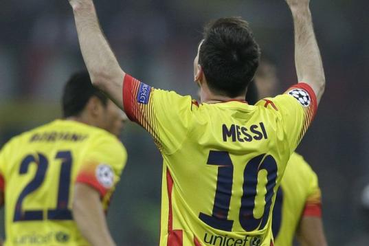 Messi festeja el gol ante Milán en la Liga de Campeones