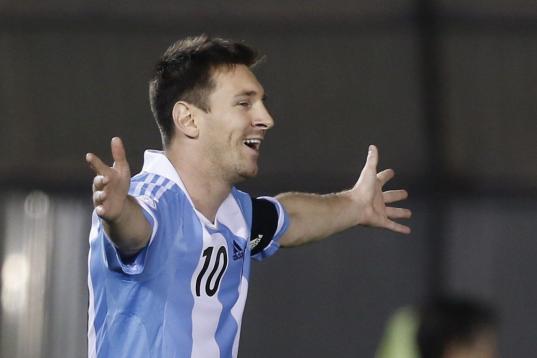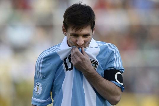 Argentina's Lionel Messi reacts during a World Cup 2014 qualifying soccer match against Bolivia in La Paz, Bolivia, Tuesday, March 26, 2013. (AP Photo/Juan Karita)