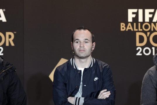 From left: Portugal's Christiano Ronaldo, Spain's Andres Iniesta and Argentina's Lionel Messi, the nominees for the FIFA Men's World Soccer Player of the Year Award, attend a press conference during the FIFA Ballon d'Or Gala 2013 held at the Kon...