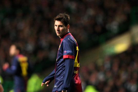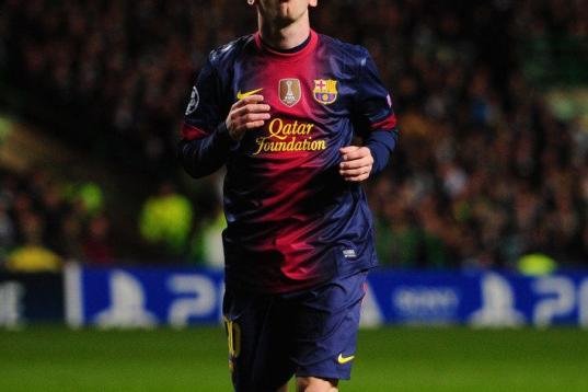 GLASGOW, SCOTLAND - NOVEMBER 07: Barcelona player Lionel Messi reacts during the UEFA Champions League Group G match between Celtic and Barcelona at Celtic Park on November 7, 2012 in Glasgow, Scotland. (Photo by Stu Forster/Getty Images)