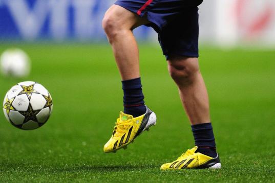 GLASGOW, SCOTLAND - NOVEMBER 07: Barcelona player Lionel Messi wearing a new pair of Boots before the UEFA Champions League Group G match between Celtic and Barcelona at Celtic Park on November 7, 2012 in Glasgow, Scotland. (Photo by Stu Forst...